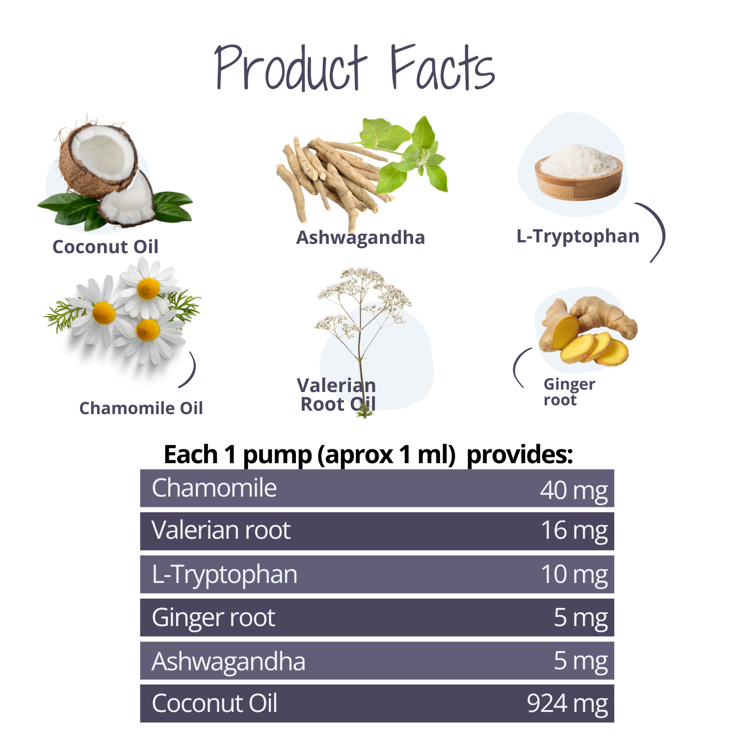 - NATURAL INGREDIENTS THAT WORK – Coconut butter enriched with chamomile oil, valerian root oil, L-Tryptophan (98%), ginger root powder and ashwagandha – a powerful calming formula.