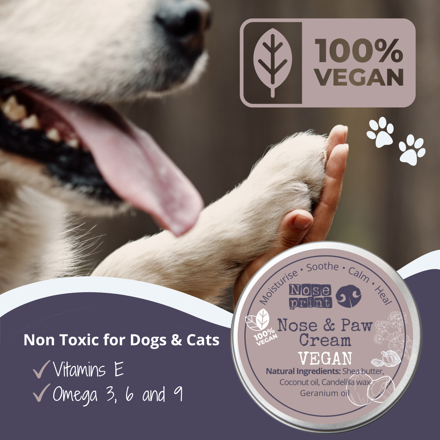 - Easy to use dog paw balm nose butter for dogs moisturises and conditions and relieves dry and cracked paws balm - apply thin layer on clean dogs paw or nose. It is not toxic for the dog if she licks it off. It contains Vitamins E and Omega 3,6 and 9.